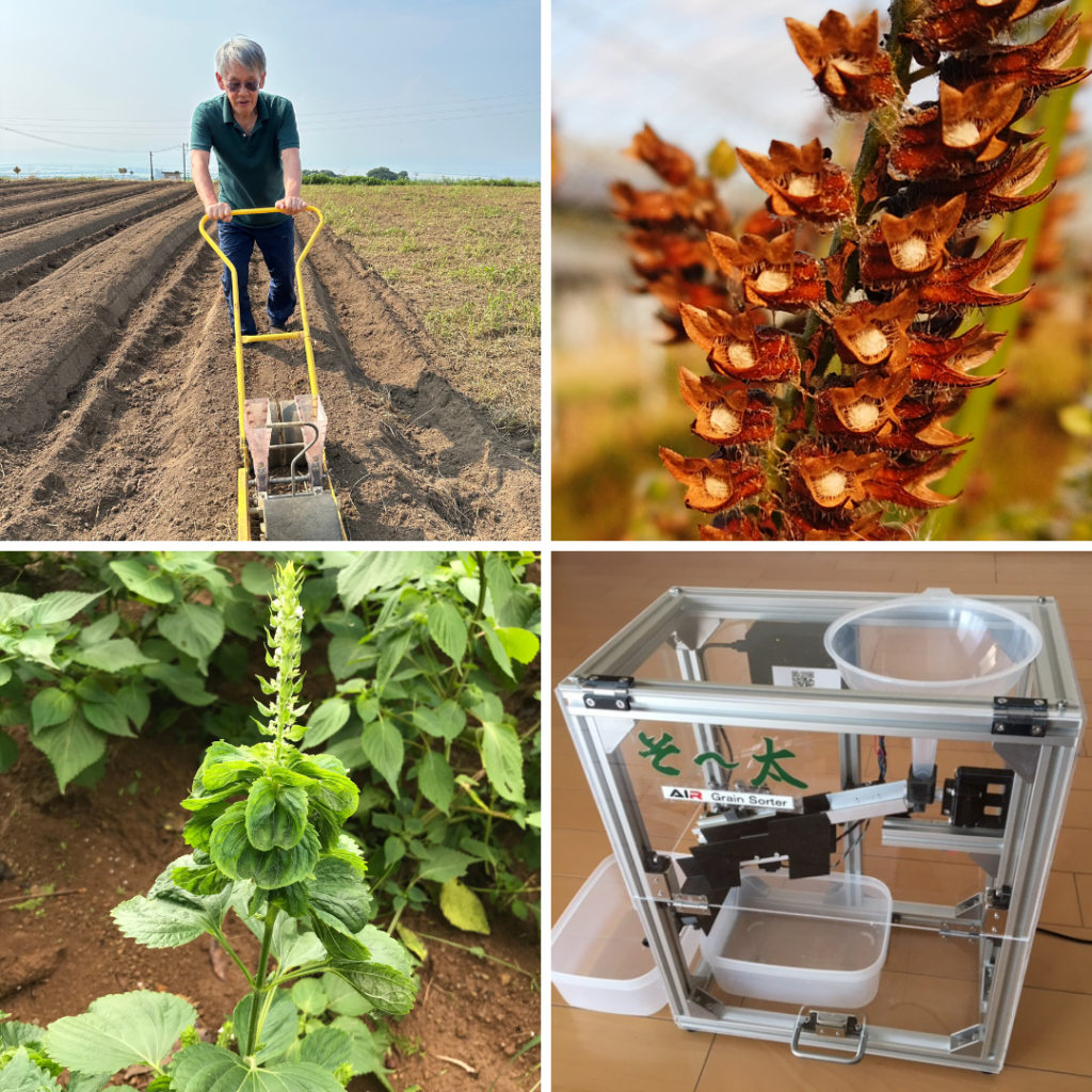 長崎県雲仙市吾妻町の有機JAS認証ほ場で国産有機黒ゴマ・えごまの生産に取り組み、弊社がレンタルサービスを行っている選別機を活用し質の良いものに仕上げます。